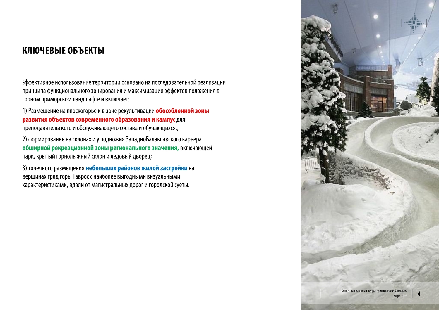 Балаклавское рудоуправление, осуществляя рекультивацию расположенного к западу от Балаклавской бухты Западно-Балаклавского карьера (ЗБК), проведя маркетинговые исследования и учитывая упоминаемое Поручение Президента, разработало проект комплексного развития территории ЗБК общей площадью более 100 Га, сочетающий формирование современной общественно-деловой застройки, включая инновационно-образовательный парк «Intelligence» и торговую улицу (молл), жилых районов премиум-класса для постоянного и временного (сезонного) населения, гостиничных и ресторанных объектов, инфраструктуры рекреации и спорта (круглогодичный горнолыжный комплекс, ледовый дворец), мест досуга (музей Океана, исторические музеи, паломнический центр) и парка общегородского значения.
